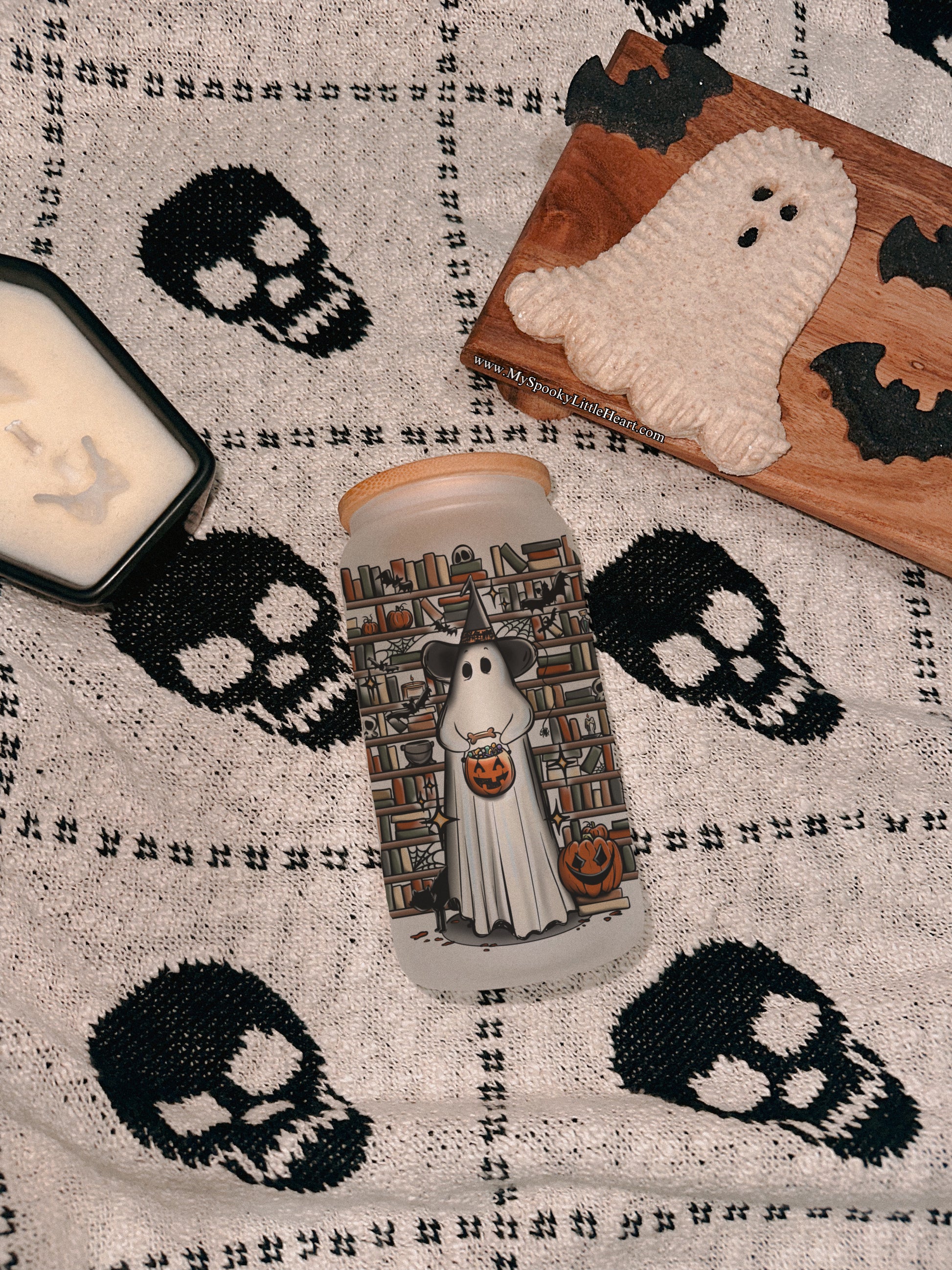 Books or Treats Halloween Bookish 16oz Frosted Glass Cup