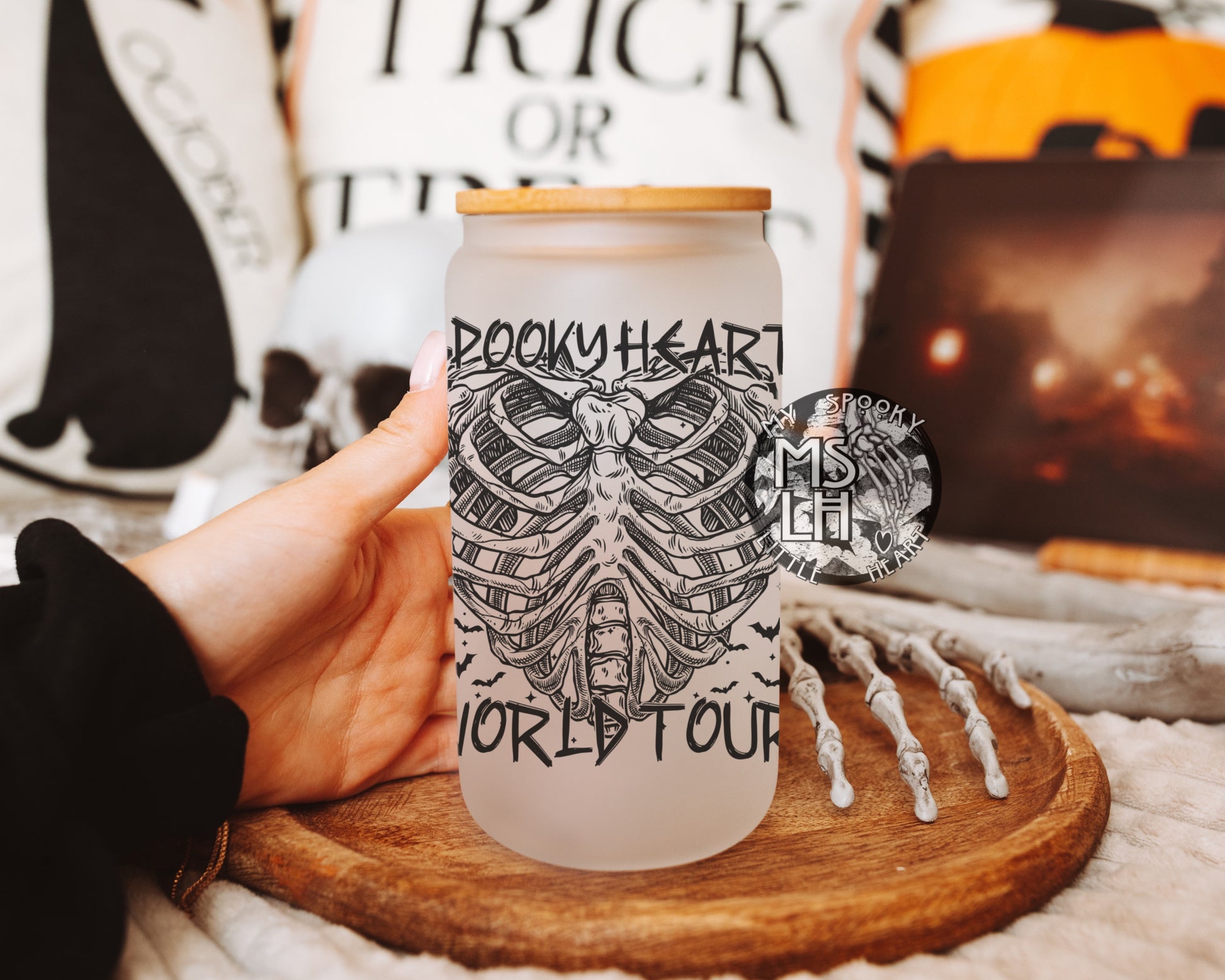Semi Exclusive Spooky Heart World Tour ribcage with bats 16oz Frosted Glass Cup