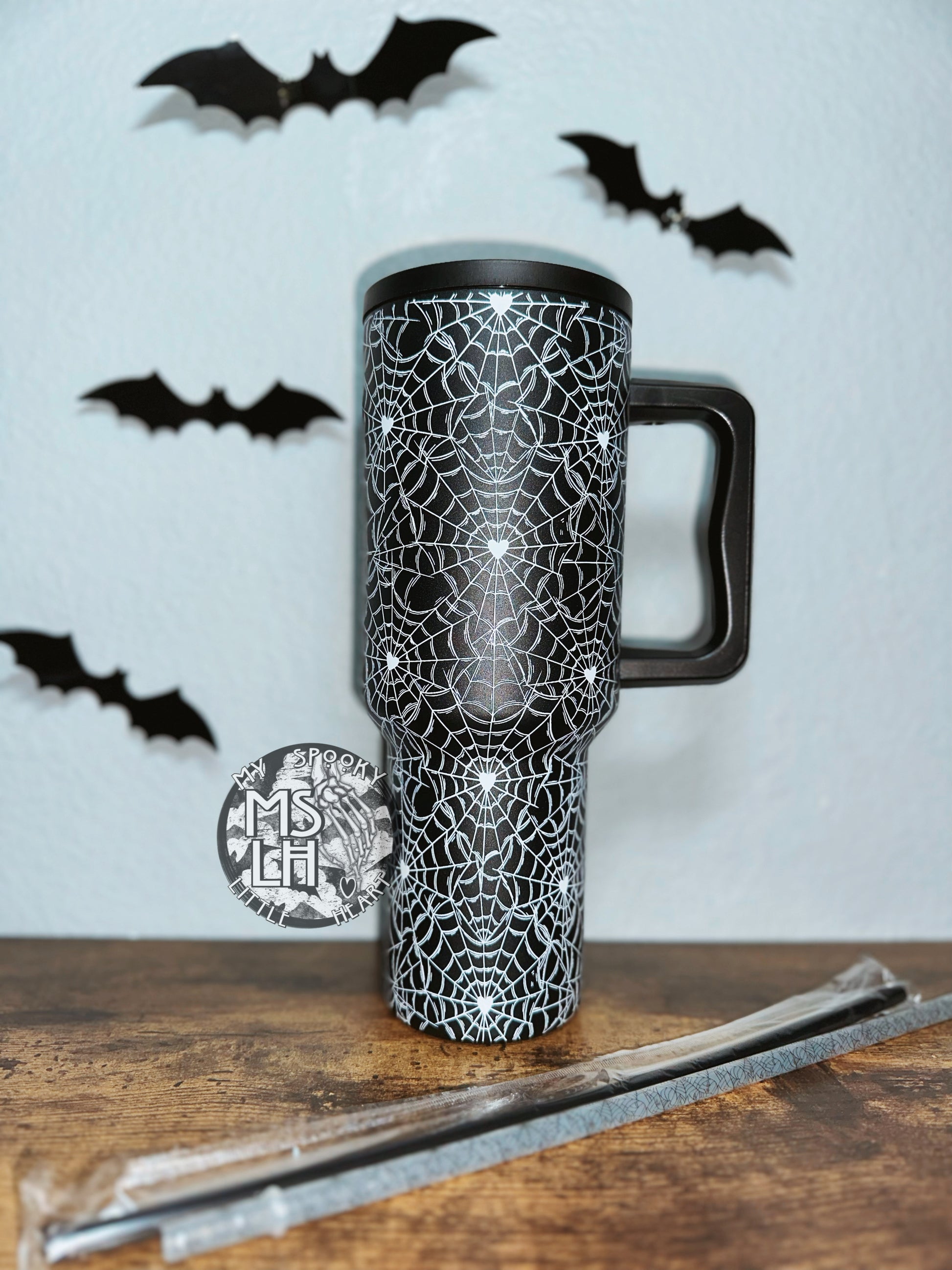 -White Web Tumbler comes with an extra spider web straw (color changes)